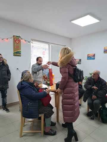 Благотворителната дарителска акция събра огромно количество хранителни продукти – олио, ориз, боб, макарони, спагети, пилешки бутчета, колбаси, сирене, кашкавал, вафли, бисквити, месни и зеленчукови консерви, плодове… И много лакомства за коледната трапеза. Дарители осигуриха още торти и баници за хората без дом и близки, от които днес получиха искрени благодарности. За всеки от тях имаше специално подготвени индивидуални подаръци според личните нужди – красиви жестове на внимание и грижа, които ще намерят под елхата.