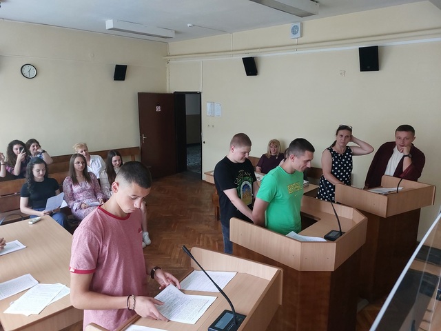 Наказание „лишаване от свобода“ за срок от 1 година и „глоба“ в размер на 500 лв., по отношение на обвиняем за управление на МПС след употреба на наркотични вещества и без свидетелство за правоуправление, определиха ученици от СЕУ "Св. Паисий Хилендарски" - Дупница. Ученици от 11-те класове, с учителя по история и цивилизация Маргарита Сапунджиева, участваха в симулативен процес,