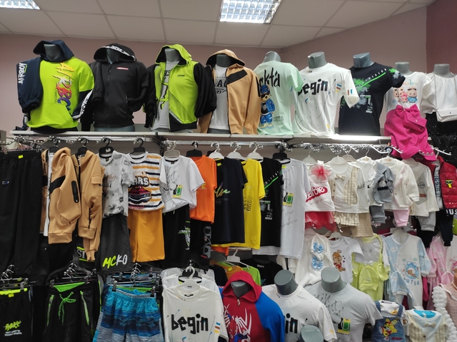 На специализираните щандове за детско облекло на партера и втория етаж ще намерите изобилие от елегантни рокли, туники, костюми, ризи, поли и панталони, за да са децата ви елегантни и стилни в първия ден в детската градина.