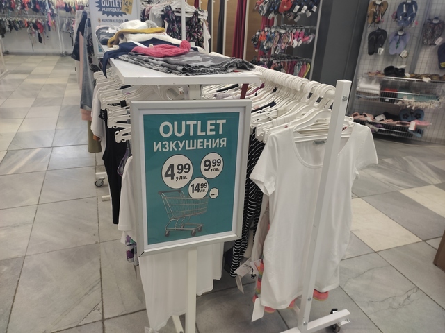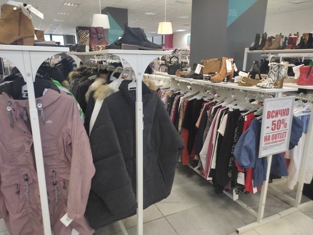 Новото зареждане с есенни и зимни връхни дрехи за дамите ще ви изкуши със стилни и елегантни модели, предлагани на половин цена. Специалната промоция – 50% от цената на етикета се отнася за всички аутлет дрехи, обувки и бански костюми. Можете да се възползвате от нея, избирайки блузи, тениски, ризи, сака, панталони, поли, рокли и др. на световни топ марки.