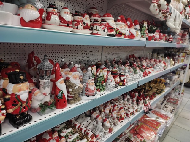 Очаква ви изобилие от ароматни свещи, изкуствени дръвчета, класически коледни сувенири, светещи фигури, венци и външни декорации.