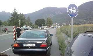 Единствената велоалея в Дупница се превръща в паркинг, сигнализираха потребители на Dupnicanews.EU Обособената за велосипедисти зона от жк „Бистрица” до парк „Рила” се използва за безплатно паркиране най-често в почивните дни, когато на паркинга пред парка няма места. Паркираните автомобили принуждават хората с колела да излизат на пътното платно и създават предпоставки за произшествия. Въпреки че практиката е факт отдавна, досега служителите на КАТ не упражняват контрол. Велосипедистите са притеснени, че тенденцията ще се засили, след като от 1 юли паркингът пред парк „Рила” стане платен.