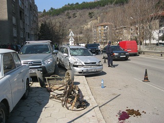 19-годишен младеж предизвика катастрофа на Наковия мост в Дупница. Марио Кръстев изгубил управление над колата си Опел Астра петдесетина метра, след като преминал натовареното кръстовище, разказа спътничката му. Автомобилът се завъртял и ударил отстрани, чакащата зелен светофар каруца в насрещното платно. При удара са ранени 39-годишният Цветан Коцев и 17-годишният му син Антон. Двамата са транспортирани в Спешния център. Бащата е със счупена китка, а синът – с открита рана на крака. Леко пострадал е и конят. Произшествието е обслужено от дежурна група на РПУ-Дупница. Причините за него се изясняват.