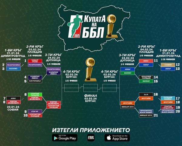 ¼-финалите от турнира за Купата на Българската баскетболна лига ще съберат 8 отбора от 8 различни града в Спортната зала в Дупница тази събота, 24 февруари. Освен домакините от Политехника, ще участват тимове от Варна, Пазарджик, Перник, София, Ямбол, Пловдив и Ботевград. Баскетболните сблъсъци ще започнат в 12 ч. с мача между Политехника Дупница и Олимпия Ямбол.