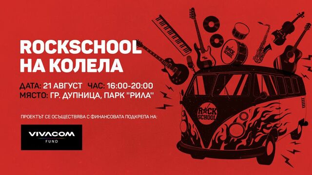 “RockSchool на колела” ще гостува в Дупница. В специално оборудван бус ще бъдат давани безплатни музикални уроци. Целта е децата и младежите да се запознаят отблизо с различни музикални инструменти. Ще има ателиета по китара, пиано, цигулка и ударни инструменти. Уроците ще са напълно безплатни и ще представляват кратки сесии, в които участниците ще се запознават с основите на свиренето на съответния инструмент. Датата е 21 август (неделя), а мястото – парк “Рила”.