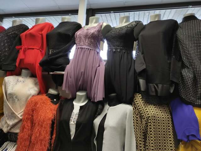 За безупречната визия на дамите в делник и празник ще се погрижат на съседния щанд на втория етаж в магазина. Най-актуалните модели кожени панталони, дънки и оригинални клинове ще намерите тук. Можете да ги съчетаете с модерни и удобни блузи, суитчъри и пуловери или да изберете на супер изгодни цени атрактивни зимни якета от естествена или еко материя, с пухкави кожени качулки, елегантни и удобни за всеки зимен ден. Идеята ви за празнични тоалети може да намери своето решение тук, като изберете между разнообразните модели официални и стилни рокли.