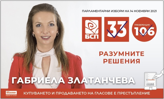 Габриела Златанчева е младото, различно лице БСП в листата с кандидати за народни представители за Кюстендилска област. Тя е на 29 години, майка на две деца, учител по биология в СЕУ “Св. Паисий Хилендарски” - Дупница, треньор по тенис, общественик. Времето й е запълнено с професионални, семейни и обществени ангажименти и именно тази активност е в основата на решението й да влезе активно в политиката – като председател на Младежката организация на БСП в община Дупница и област Кюстендил. За втори път е кандидат за депутат в листата на социалистите с преференциален №106.