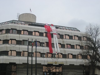 От днес сградата на кметството в Дупница е окичена с огромна мартеница. Дупничани посрещат 1 март с 12 метрови Пижо и Пенда, изработени от ученици от ОУ „Св. св. Кирил и Методий”, с ръководител Надежда Попова.