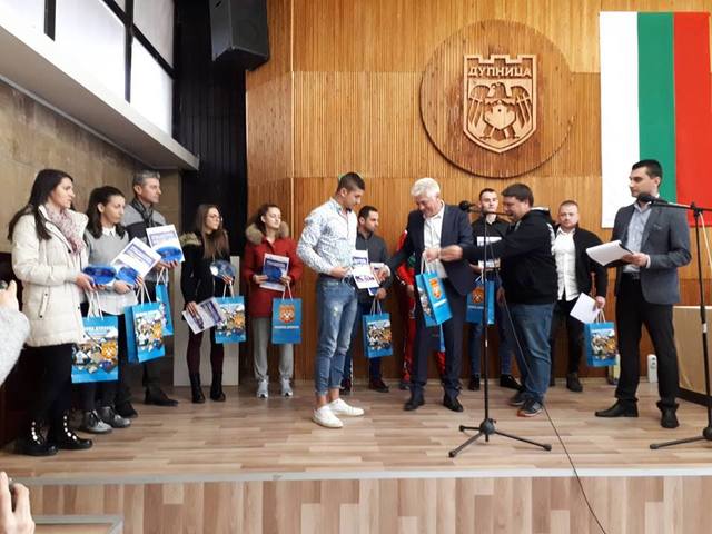 Световният вицешампион и балкански шампион по кикбокс Доброслав Радев е Спортист №1 на Дупница за 2018 година. Традиционната годишна церемония се проведе днес, а наградите връчи кметът Методи Чимев. Втрото място зае Иван Илиев, състезател на клуба по силов трибой “Марек 13” и Митко Джорджев от таекуондо клуб “Гладиатор”.Младият състезател по таекуондо оглави класацията при юношите. Подгласници са му неговите съотборници Александра Георгиева и Радина Борисова. Специални награди получиха националните състезатели по борба, родом от Дупница, Даниел Александров и Кирил Милов. Техният първи треньор Виктор Бонев им подари икони, с пожелания за здраве и още много успехи. Александров върна жеста като подари на общината златния си пояс от турнира “Никола Петров” и трикото, с което го спечели. Кирил Милов също преди месец подари трикото, с което стана вицешампион. Подаръците ще положат началото на музейна сбирка, посветена на дупнишкия спорт, която ще се обособи в Спортната зала. Отбори на годината станаха, при колективните спортове- "Ейнджълс"- софтбол и бейзбол, а при индивидуалните спортове "Марек Дигеста"- по тенис на маса.