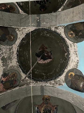 Изобразени са св. Йоан Кръстител, Иисус Христос Вседържител (Пантократор), Бог Саваот и сцената „Богородица Ширшая Небес”. В изпълнението категорично личи майсторството на прочутата школа, основоположник на Самоковската художествена школа, както в живописно отношение, така и по отношение използваната технология и приложени материали. Запазените стенописи в храма са изписвани от поне четирима различни автори. Уникални са обаче, стенописите в предверието на храм„Св. Никола” и там е работил друг, пети автор, подчерта Чергаров. Става въпрос за изображенията, където стои надписът с имената на Тефик Ефенди и Ислам Ефенди. От историята на храма те са ни познати като дарители, които възстановяват щетите от опожаряване на черквата през 1852 година, но реставраторът допуска, че те може дори да са автори на изписаните сцени там. Причината е, че пред имената на Тефик и Ислам в надписа над образа на св. Николай, под арката на централния вход в артиката, пише „приложникъ”. Приложниците, в терминологията на храмовото дарителство, са тази категория дарители, които са допринасяли в миналото за зографисването или вътрешното благоустройство на храмовете, докато ктиторите са тези, които са дарявали пари или земи за построяването на култовите сгради. Работата по възстановяването на стенописите е продължила повче от година. В периода на социализма те са били покрити веднъж с блажна боя, после с безир и накая с латекс. При реставрацията сцените са били запазени, но не и орнаментите. Реставраторът е нарисувал и един нов стенопис, който изобразява св. Йоан Рилски.