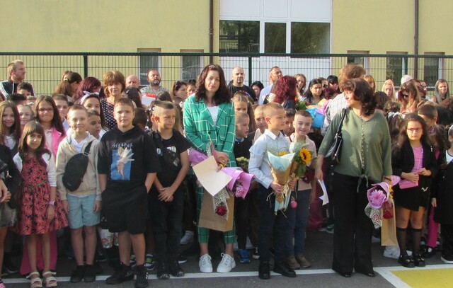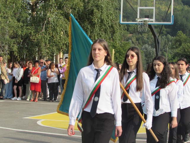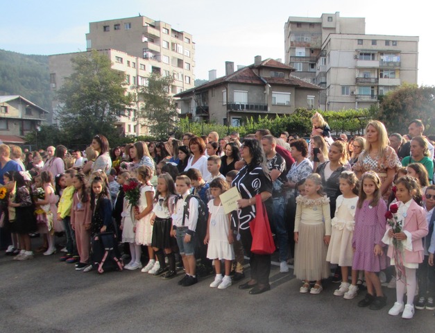 Директорът Анелия Йорданова плисна пред тях менче с вода за късмет и удари училищния звънец. Тя приветства всички ученици, учители и родители и пожела успешна учебна година. Гост на тържеството беше Маруса Терзийска от отдел “Образование4 в община Дупница. 934-мата възпитаници на най-голямото дупнишко училище застанаха мирно под звуците на националния химн. Бяха издигнати знамената на България и на Европейския съюз, посрещнато бе и училищното знаме. С много настроение участниците в празничната програма. Голяма част от родителите оставиха средства в дарителската кутия, предназначени за подпомагане на пострадалите от водното бедствие по Южоното Черноморие. Училището се включва за втора поредна година в благотворителната инициатива “Без цветя на първия учебен ден”.