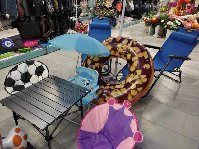 Тук ще намерите и очила за плуване, шнорхели и всички други аксесоари и за вашето удобство. Предлагат се дамски, мъжки и детски бански костюми, в различни десени и модели, плажни шапки – сламени или от плат, както и джапанки или чехли. Можете да изберете и сгъваеми столове, масички, чадъри и шезлонги, за да направите своето кътче на плажа комфортно и красиво.