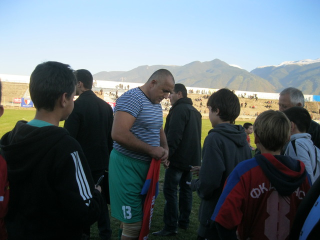 Премиерът Бойко Борисов подкрепи екипа на кандидата за кмет от партия ГЕРБ инж. Методи Чимев, с участието си в атрактивен футболен мач на стадион “Бончук” днес. Само няколко дни, след като с негова помощ бяха осигурени 100 000 лева за стабилизиране състоянието на дупнишкия футболен отбор “Марек”, министър-председателят лично дойде в Дупница, за да заяви волята на правителството да помага за развитието на спорта. След края на полуфиналната среща между ветераните на “Витоша” - Бистрица и “Марек”, премиерът заяви, че жестът към местния отбор е провокиран от идеята да се подпомогне спортната дейност за децата и младите хора.